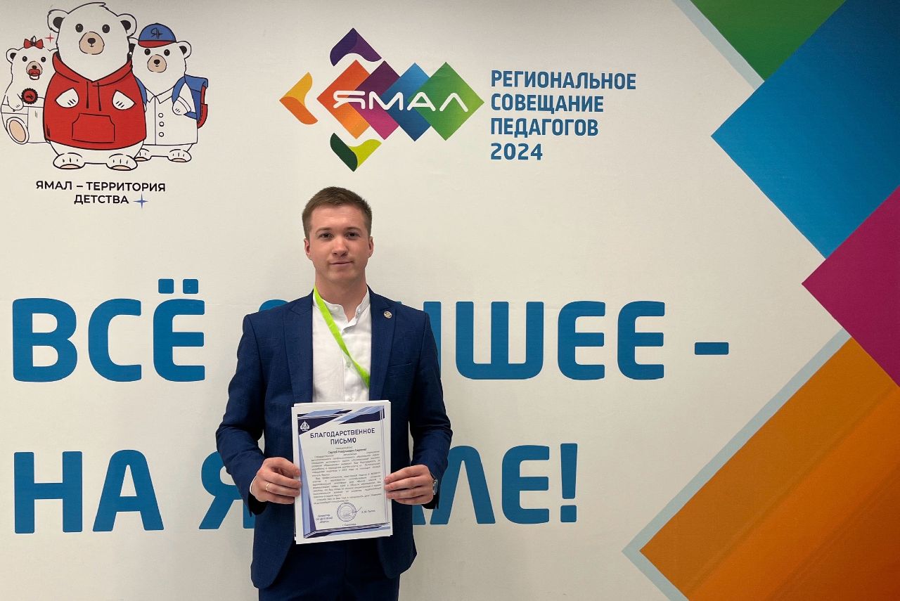 В 2023 году Сергей Сергеевич одержал победу в региональном конкурсе грантов «Новый учитель Ямала», представив свой инновационный проект «Литературная мастерская как средство повышения качества преподавания русского языка и литературы». И уже через три месяца после защиты проекта, Сергей делился опытом с коллегами о внедрении цифровизации в уроки русского языка и литературы на «Региональном совещании педагогов 2024».